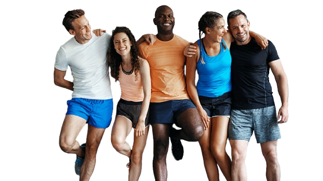Full activewear kit including dry-fit t-shirts, caps, and drawstring bags for a health insurance company’s annual marathon.